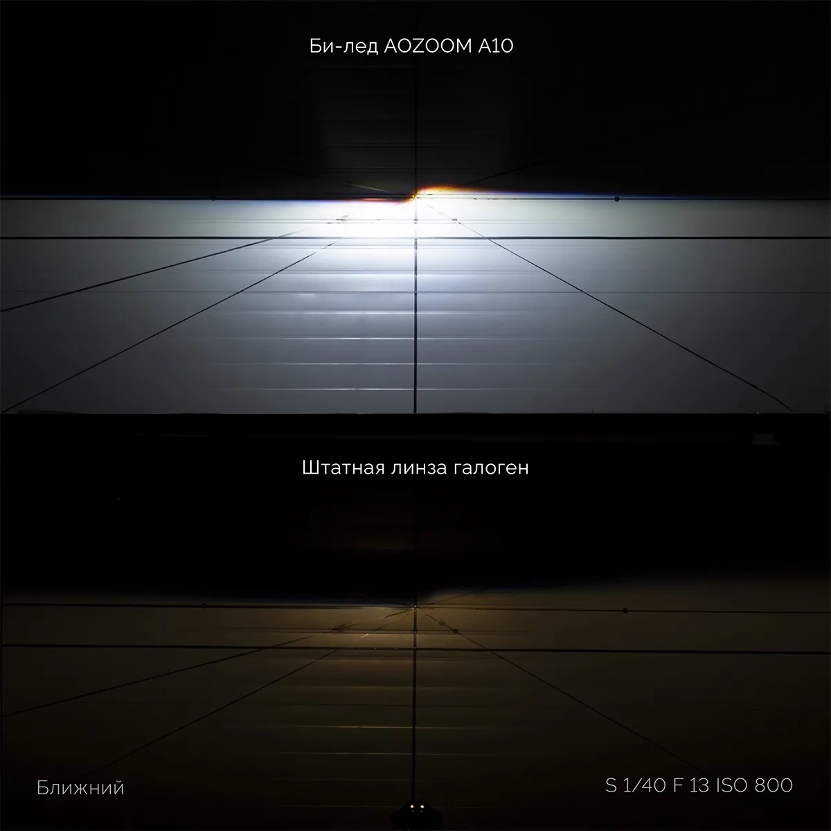 В горизонтальной плоскости модель Aozoom A10 имеет широкую геометрию пучка, хорошо охватывая как обочину справа, так и левую сторону дорожного полотна, при этом имея классическую ступеньку по середине, делая защиту от ослепления встречного транспорта.